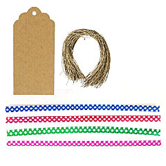 Wrapables 50 White Scallop Gift Tags/Kraft Hang Tags With Free Cut String & 1 Pink Heart Flower Washi Roll