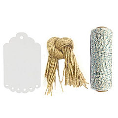 Wrapables 50 Gift Tags/Kraft Scalloped Edge Hang Tags With Free Cut Strings + Blue Grey Cotton Baker'S Twine 4Ply 110 Yard