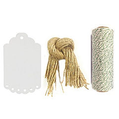 Wrapables 200Pcs 4.75" Gingham1 Twist Ties With 20 Scalloped Gift Tags/Kraft Hang Tags And Free Cut Strings
