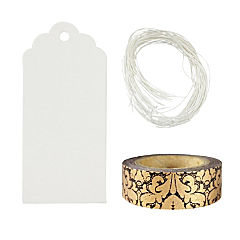 Wrapables 50 White Scallop Gift Tags/Kraft Hang Tags With Free Cut String & 1 Gold & Bold Washi Roll