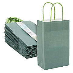 25 Pack Small Paper Gift Bags with Handles for Party Favors, Bulk Shopping Merchandise Bags, Green 9 x 5.5 x 3 In