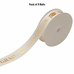 1"x25 Yards Satin Congrats Grad Gold Printed White Ribbon - Pack of 5 Rolls