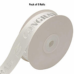 1"x25 Yards Satin Congrats Grad Silver Printed White Ribbon - Pack of 5 Rolls