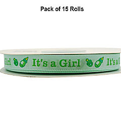 3/8" x 25 Yards Mint It's a Girl Satin Ribbon 15 Rolls Pack