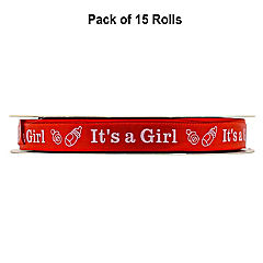 3/8" x 25 Yards Red It's a Girl Satin Ribbon 15 Rolls Pack