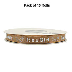 3/8" x 25 Yards Tan It's a Girl Satin Ribbon 15 Rolls Pack