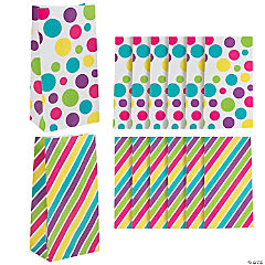 Stripe & Polka Dot Printed Gift Bags with Tags Assortment - 12 Pc.