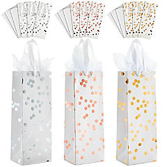 12 Pack White and Gold Foil Polka Dot Wine Bottle Gift Bags with Tissue Paper