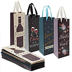 12 Pack Wine Bottle Gift Bags with Handles, Bulk Set for Birthdays, Fathers Day, Holidays, Christmas in 4 Designs, 4.6 x 13.7 x 4 In
