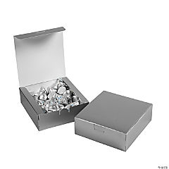 5" x 4 1/2" x 2" Metallic Silver Square Cardstock Party Favor Boxes - 12 Pc.