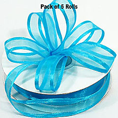 1/8"x50 yards Turquoise Organza Pull Bows Ribbon with Iridescent Edge