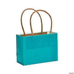 4 1/2" x 1 3/4" x 3 1/4" Mini Turquoise Kraft Paper Gift Bags - 12 Pc.