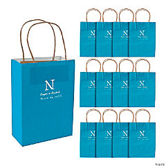 Turquoise Medium Personalized Monogram Welcome Paper Gift Bags with Silver Foil - 12 Pc.