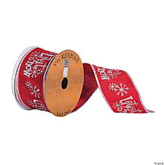 Vickerman 2.5" x 10yd Red Woven with White Printed Holiday Greetings and Wired Edge