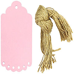 Wrapables 50 Gift Tags/Kraft Hang Tags With Free Cut Strings, Large Scalloped Edge (Pink)