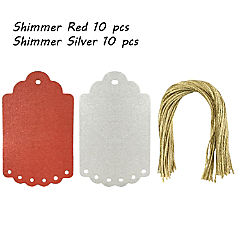 Wrapables 20 Gift Tags/Kraft Hang Tags With Free Cut Strings, Large Scalloped Edge (Shimmer Red & Silver)