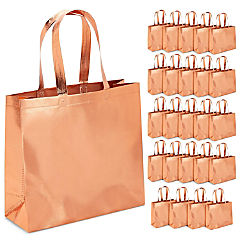 24 Pack Rose Gold Gift Bags with Handles, Large Non-Woven Reusable Grocery Tote Bags, 13.8 x 11.8 x 4.72 In