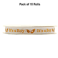 3/8" x 25 Yards Tan It's a Boy Grosgrain Ribbon 15 Rolls Pack