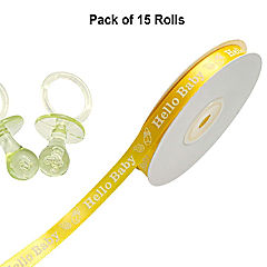 3/8" x 25 Yards Yellow Hello Baby Grosgrain Ribbon 15 Rolls Pack