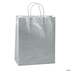 Large Silver Kraft Paper Gift Bags - 12 Pc.