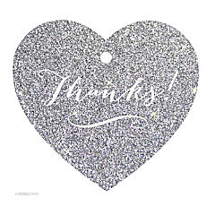 30 Heart Tag Whimsical Thanks! Slvr Glit