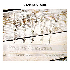 3/8" x 25 Yards Silver "Primera Comunion" Spanish Printed First Communion Ribbon