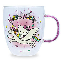 Sanrio Hello Kitty Unicorn Glass Mug With Glitter Handle Holds 14 Ounces