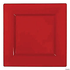 9.5" Red Square Plastic Dinner Plates (40 Plates)