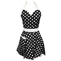 Wrapables Classic Sweetheart Adjustable Apron, Black With Dots