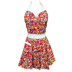 Wrapables Classic Vintage Apron, Stylish Cooking Apron, Red Hot Lace