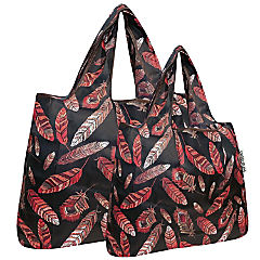 Wrapables Large & Small Foldable Tote Nylon Reusable Grocery Bags, Set of 2, Feathers