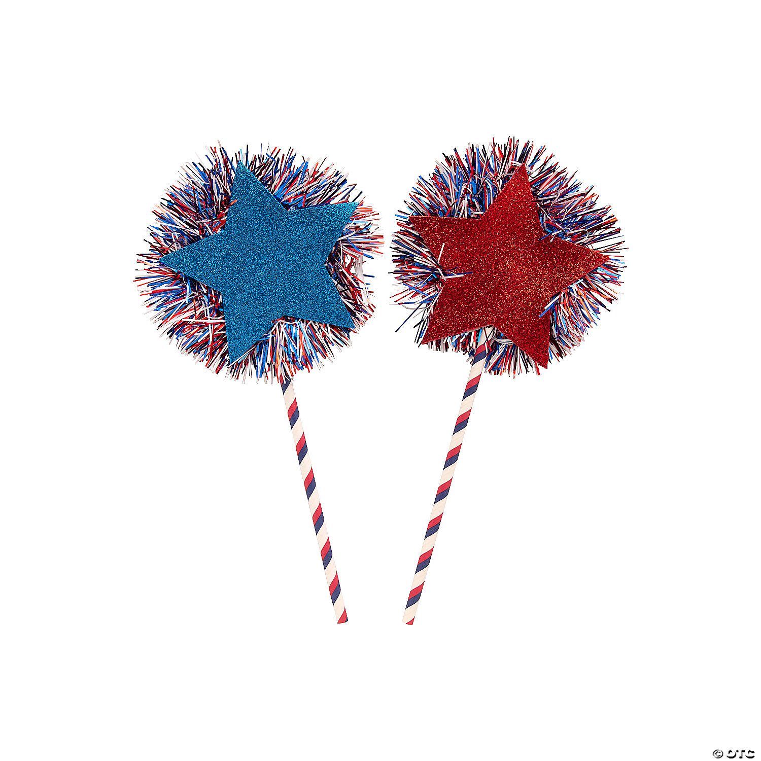 Add a craft kit to your party supplies for an Independence Day event. This wand features a red, white and blue color scheme, sparkly tinsel and glitter and when assembled, resembles the burst of color from a firecracker. Kids will be thrilled to put together these crafts and then show them off to family and friends. Includes self-adhesive foam pieces, paper straws and tinsel. 5" x 10 1/2" Makes 12. All craft kit pieces are pre-packaged for individual use. Kits include instructions. © OTC