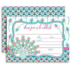 AmandaCreation Pink and Teal Peacock Invites 40pc.