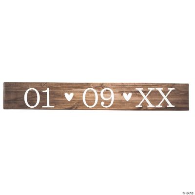 Create a custom home décor piece that you can proudly display at your wedding reception and then as part of your home wall art long after the party is over. Perfect for a rustic wedding theme or home décor theme, simply add the date of your wedding. The numbers are separated by hearts. Personalize with 1 line of text. 28" x 4" © OTC