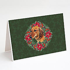 Caroline's Treasures Dachshund Poinsetta Wreath Greeting Cards and Envelopes Pack of 8, 7 x 5, Dogs