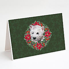 Caroline's Treasures Westie Poinsetta Wreath Greeting Cards and Envelopes Pack of 8, 7 x 5, Dogs