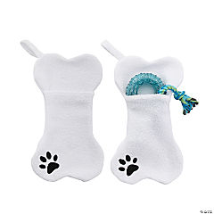 8" x 14" Soft White Plush Dog Bone-Shaped Christmas Stocking