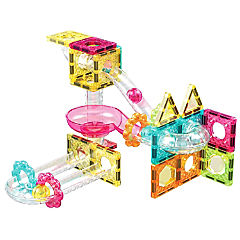 PicassoTiles 45 PC Mini Marble Race Track Building Block & Magnetic Tiles, Building STEM Toy for Kids 3+