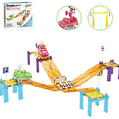 PicassoTiles 45 PC Race Car Tracks with Slopes for Racing, Magnetic Building Toys for Kids 3+