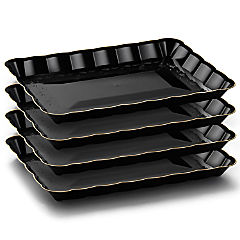 Posh Setting Black and Gold Rectangular Serving Tray with Scalloped Edge - 4 Count