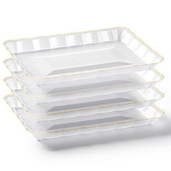 Posh Setting White and Gold Rectangular Serving Tray with Scalloped Edge - 4 Count