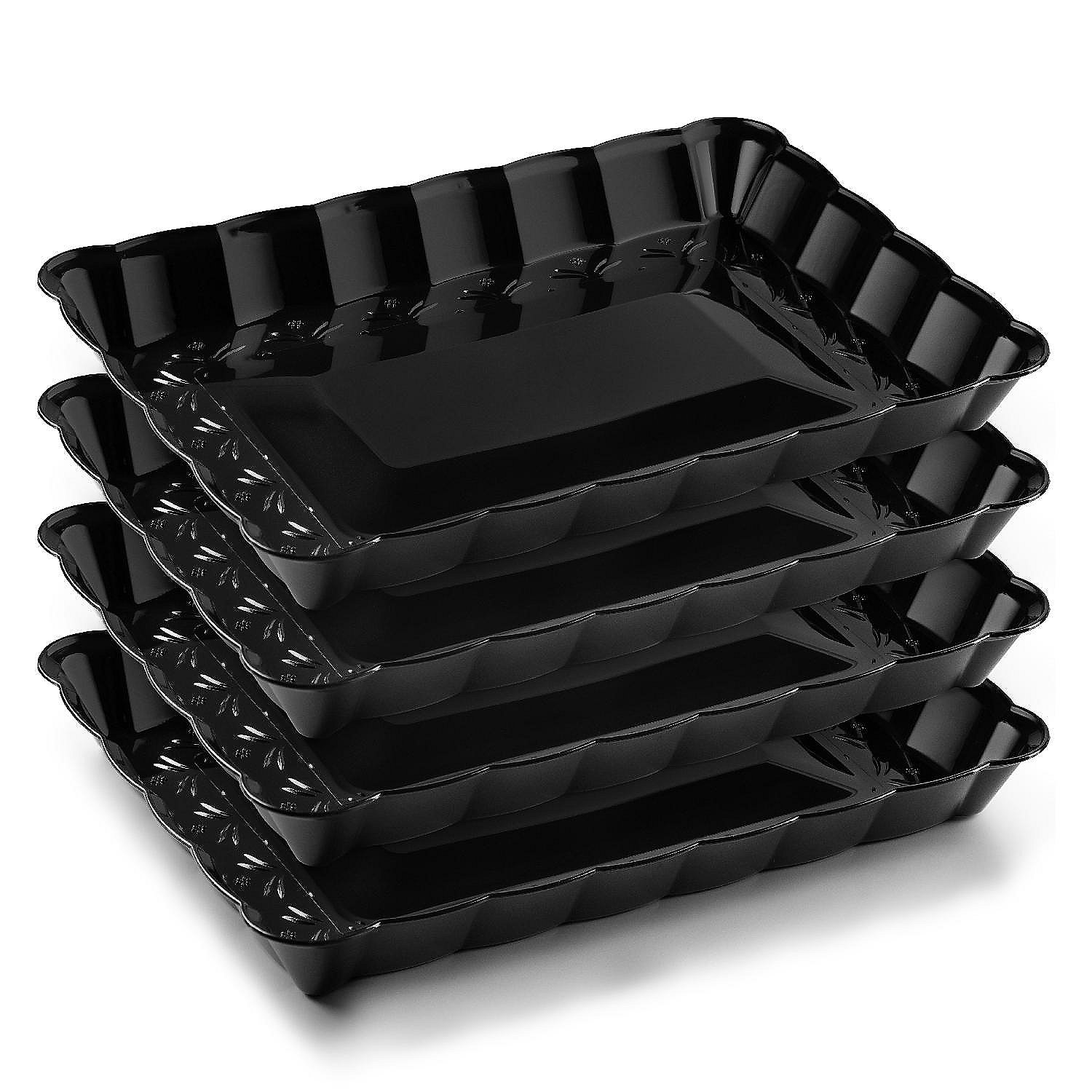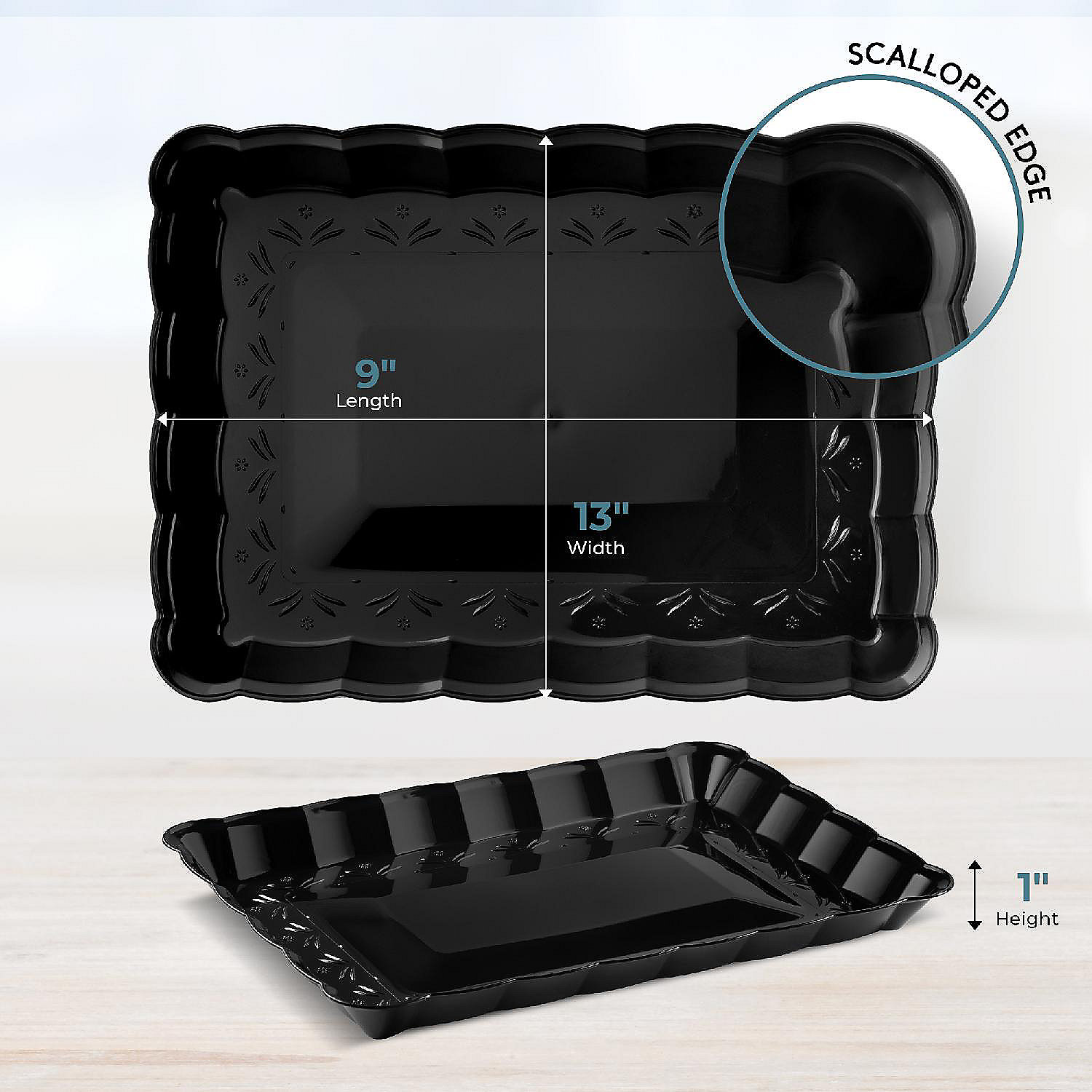 Posh Setting Black Rectangular Serving Tray with Scalloped Edge - 4 Count