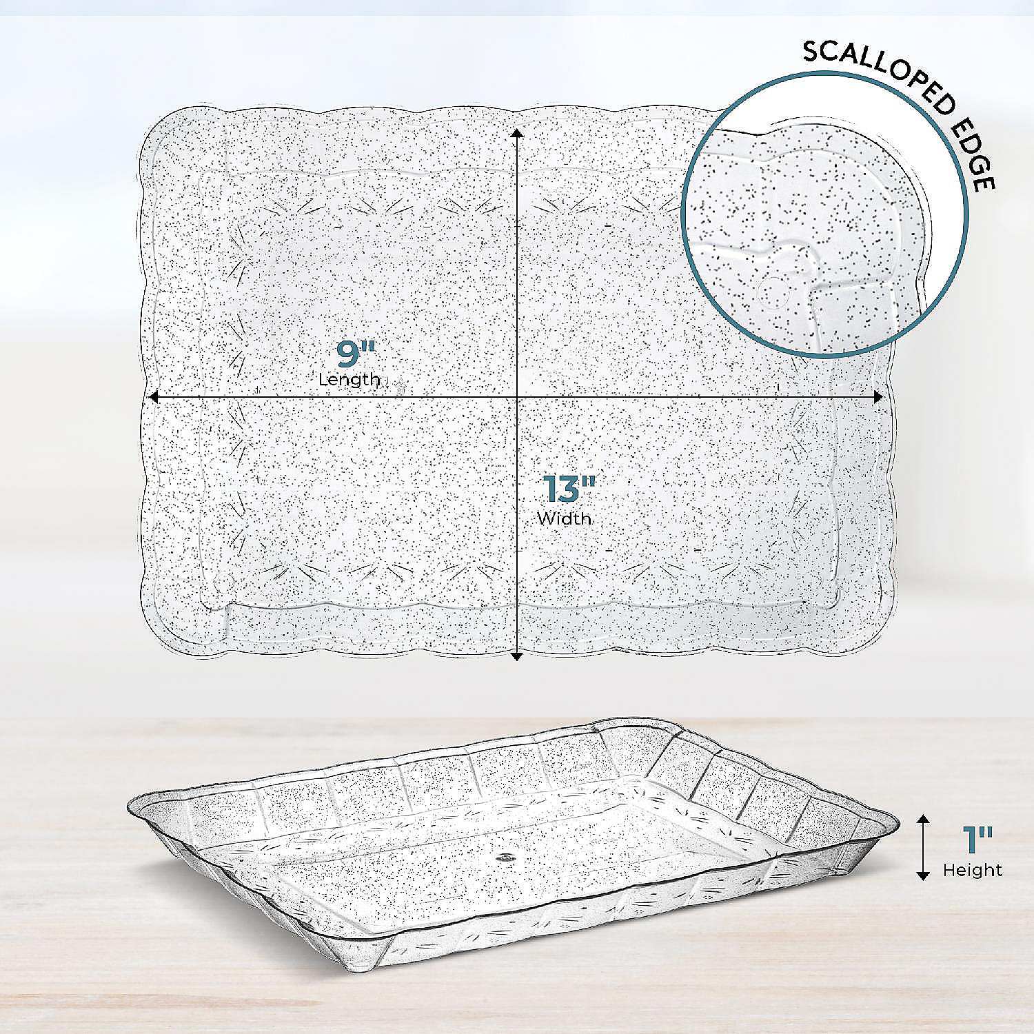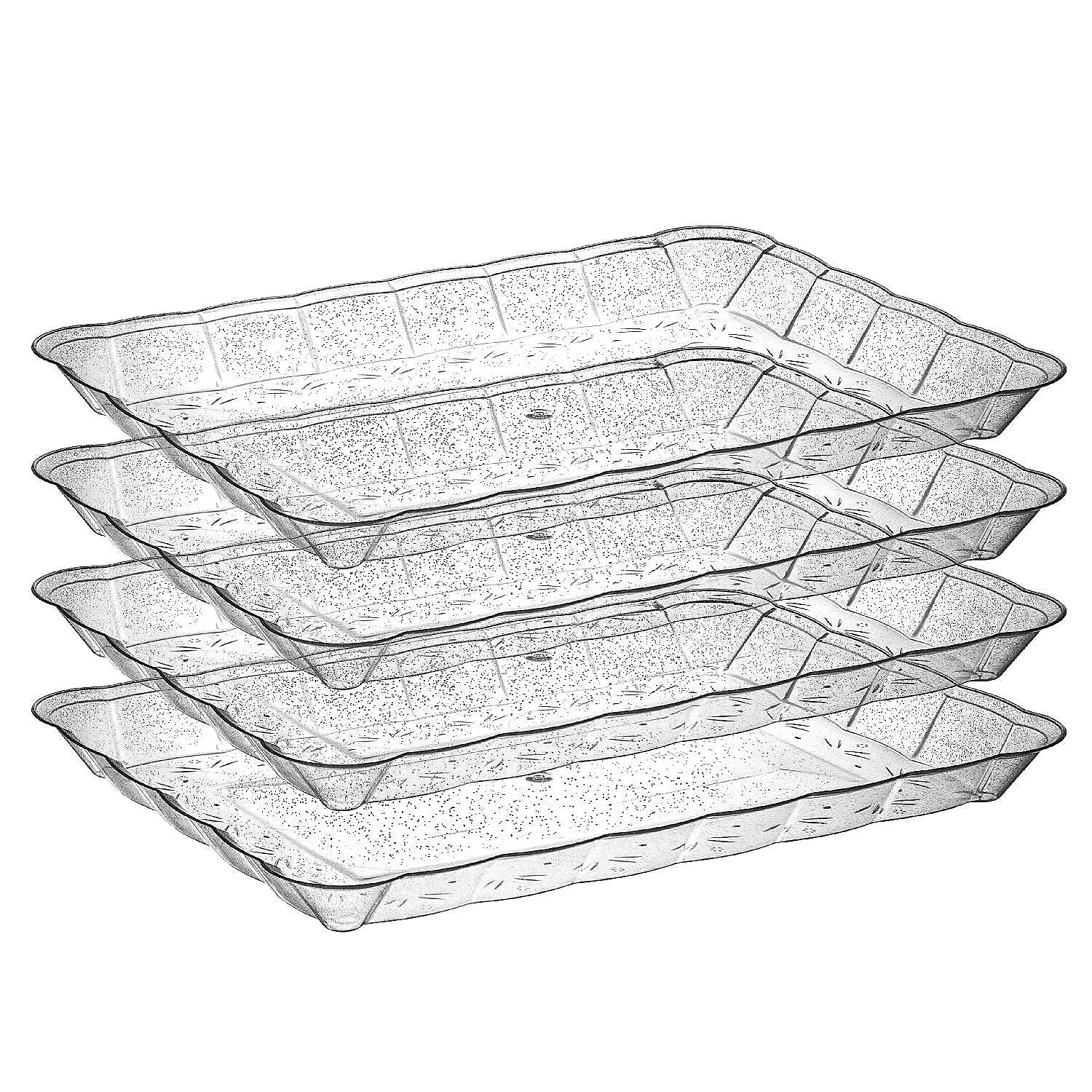 Posh Setting Silver Glitter Rectangular Serving Tray with Scalloped Edge - 4 Count
