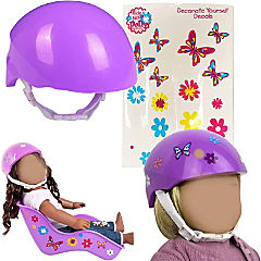 Purple Bike Helmet for 18" Dolls - Includes Doll Bicycle Helmet w Decorative Decal Stickers Accessory