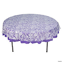 White Lace-Printed & Purple Round Disposable Plastic Tablecloth Kit - 2 Pc.