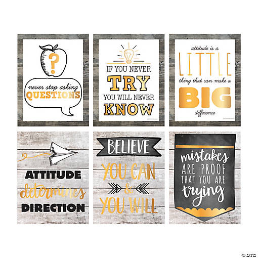 I have these posters at the front of my room near my whiteboard. The writing on them is big enough to see while not being too flashy as to distract the students from what we are discussing or doing. Yet, if they do get distracted, it has good sayings to boost them up a bit. (High School)