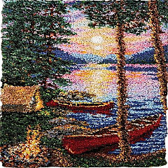 LovelyLust.com Camping Canoes Rug Making Latch Hooking Kit (100x69cm Printed canvas)