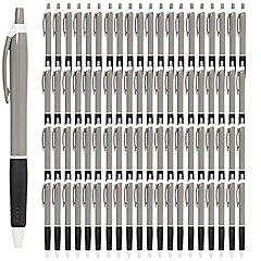 100 pack of Office Pens, Retractable Ballpoint Pens in Black Ink for Schools, Notebooks, Journals (Gray/Black, 100pcs)