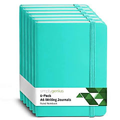 Simply Genius 6 Pack A6 Dotted Notebook, Turquoise Notebooks for Work, Travel, Business, School, Hardcover, 124 Pages, 3.7" x 5.7