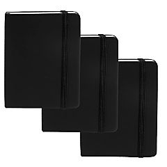 Simply Genius A6 Pocket Size Mini Notebooks with Hardcover, 124 pages (3.7" x 5.7") with Inner Pocket (Black, 3 Pack)